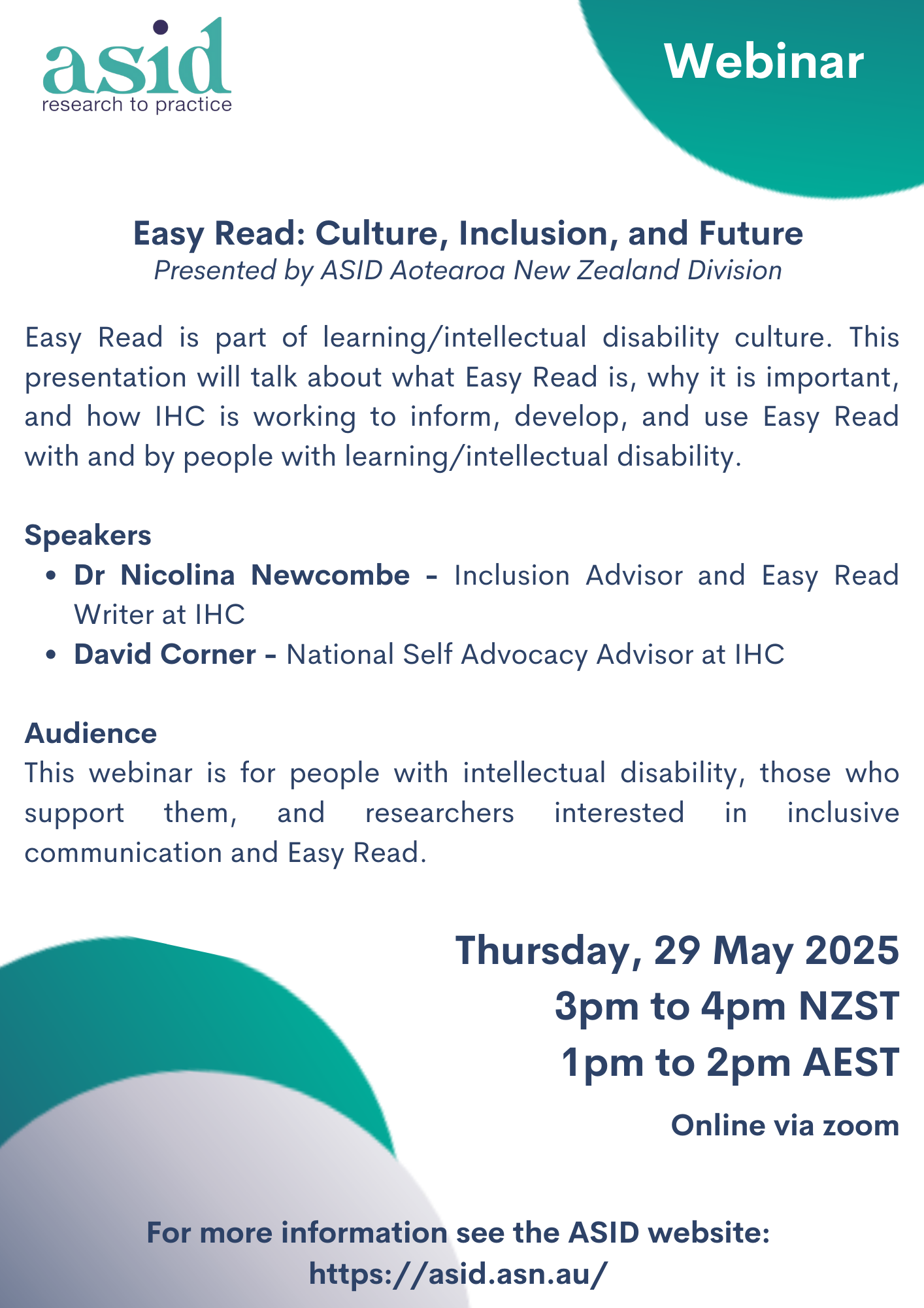 This webinar is for people with intellectual disability, those who support them, and researchers interested in inclusive communication and Easy Read.