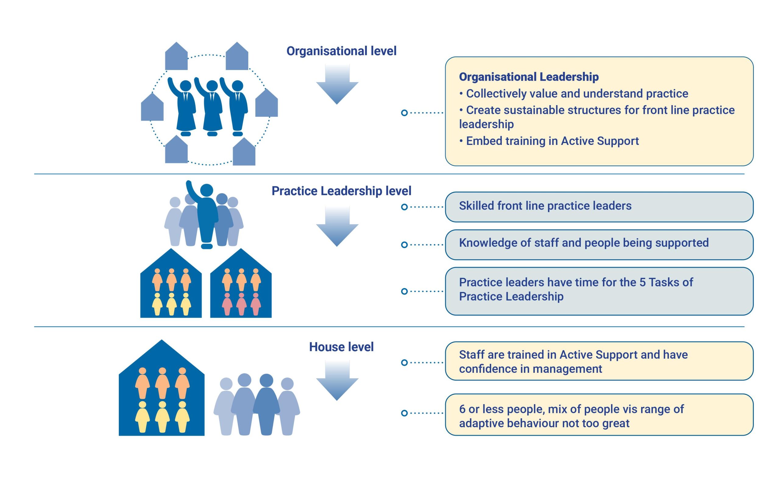 - Closeness of practice leadership to everyday service delivery. This means that frontline managers spend time in services and work alongside support workers to help them know what to do.